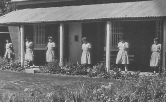Not everyone at Parramatta was given the privilege of education. Most were sent to work in the laundry, or the sewing room or kitchen. That was their ‘training’: washing the blood and shit-stained sheets from the asylum next door. Scrubbing pigeon droppings off the timber rafters above the stinking hot laundry wing. Keeping the toilets spick and span on bare knees and without rubber gloves. Scrubbing steps and footpaths, and weeding the gardens. We were free labour. Everything shone. You could eat your dinner off the footpath. Being locked up, silenced, put to work and shamed, aggravated our original trauma (the sentencing) the way salt stings a wound.